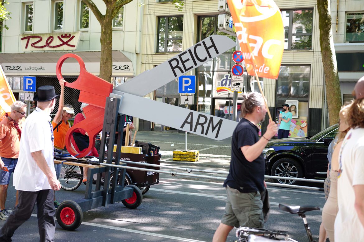 Die Pappnasen waren auf der Demo gemeinsam mit Attac unterwegs. Die Kampagne „Tax-the-Rich“ wurde unterstützt und viele Unterschriften gesammt. Demnächst kann auch online unterschrieben werden.