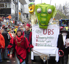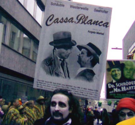 2011: Wir: „Dat loß mer uns nit beaten“ (sie: „Köln hat was zu beaten“) – Jeck und hochpolitisch thematisieren die Pappnasen den Angriff auf die Demokratie durch kapitalistische Hochfinanz und lobbyistische Niedrigmoral. Rückschau 2011