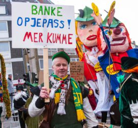 2013: Wir: „Ömverdeile deit Nut, he un am Zockerhut“ (sie: „Fastelovend em Blot, he un am Zuckerhot“) Da gehen die Robin Hoods, allen voran Tünnes Hood und Lady Mariesche, den Superreichen an die Geldsäcke, in denen die Kohle steckt, die sie der Allgemeinheit weggezockt haben. Die zurückgeholten Reichtümer werden dann so investiert, dass alle Menschen und die Natur in eine lebenswerte Zukunft gehen. Rückschau 2013