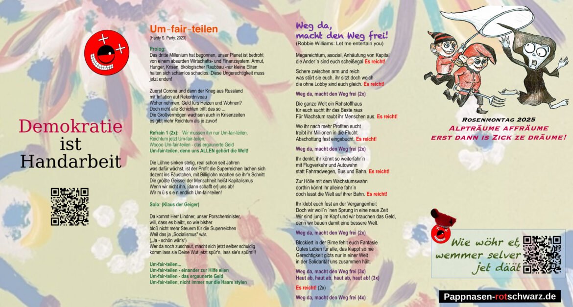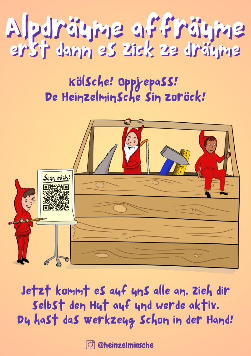 Gemeinsam für Demokratie und Gerechtigkeit, die Rückkehr der Heinzelminsche und wo ihr aktiv werden könnt: Vun nix kütt nix, wemmer selver nix däät, ess et eines Daachs zo spät